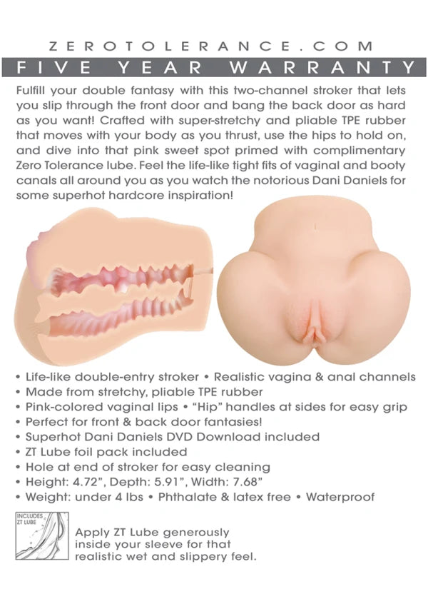 The Dani Daniels Realistic Ass and Vagina Stroker brings your fantasies to life with incredible detail and lifelike feel. Molded directly from adult film star Dani Daniels, this dual-entry stroker offers both vaginal and anal openings for versatile pleasure. Made from soft, body-safe Fanta Flesh, it features an ultra-realistic texture inside and out, with hand-sculpted curves and snug, stimulating inner chambers. The open-ended tunnel makes cleaning a breeze, while the weight and size deliver a more immersive experience. Order online and pick up in-store now at Fascinations.net. Backed by a 1-year manufacturer warranty.