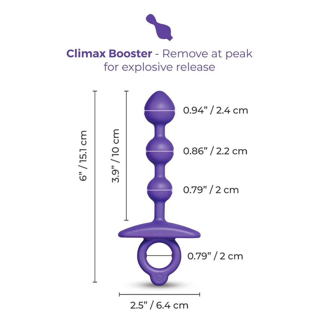 Give your booty an insanely satisfying pleasure experience with the b-Vibe Butties Zip Anal Beads. Begin by teasing each sleek silicone bead into your backdoor, starting with the larger beads and progressing to the smaller ones. For maximum pleasure, remove them just before your climax to amplify your moans of delight.