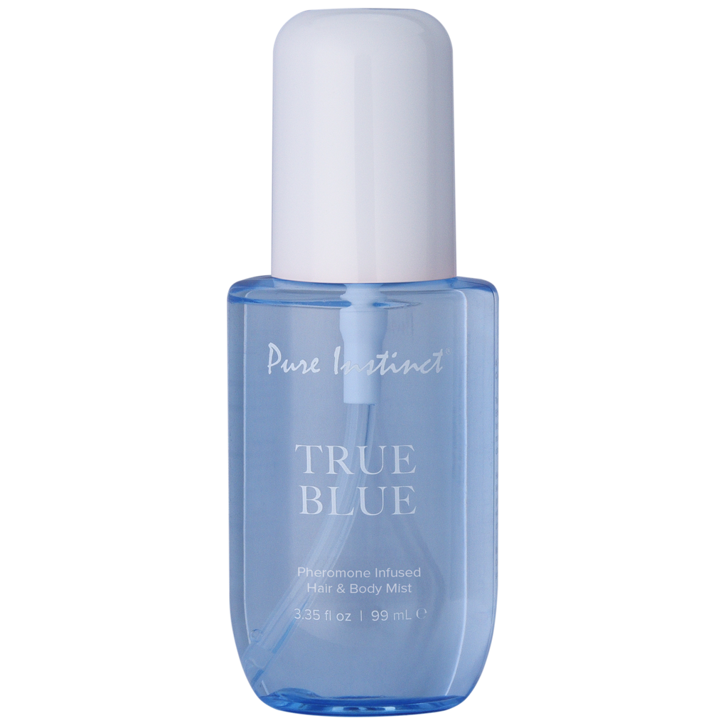 Pure Instinct Pheromone Hair & Body Mist True Blue. This luminous blend is pure feel-good energy. A burst of bergamot and mandarin sparkles with citrus brightness.
