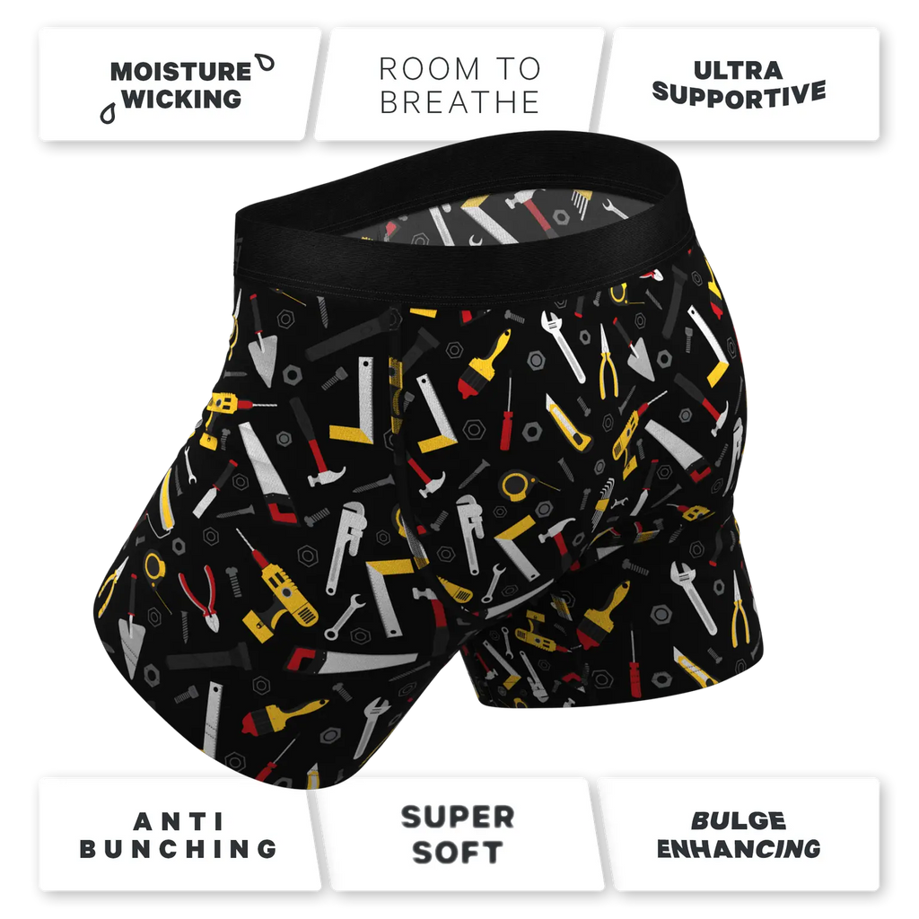Grab your Shinesty The Tool Belt Ball Hammock® Boxers and bring the craftsmanship to your comfort.