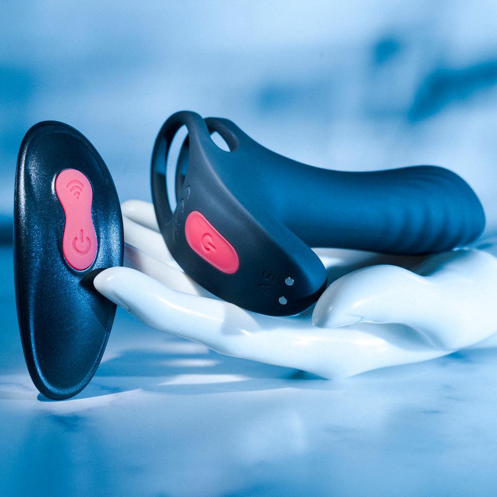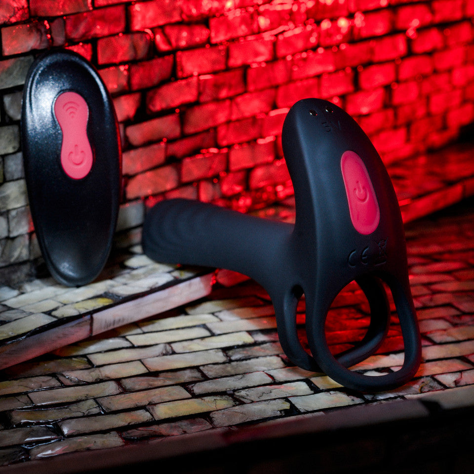 Get bigger and buzzier with the size-augmenting power of this unique vibrating penis enhancer that’s great for couples play. Two soft and stretchy loops rein in the balls and penis while the penis is supported along the top, seamlessly creating more insertable width for satisfying penetration. The remote control operates two 9-speed motors, letting you stay focused on pleasure with internal and external stimulation. This unique toy works for anyone with a penis looking for a boost in girth and a vibrating advantage, even underwater as it’s completely submersible. Fully rechargeable toy and remote. Easy to clean with Evolved Toy Cleaner and a warm water rinse.